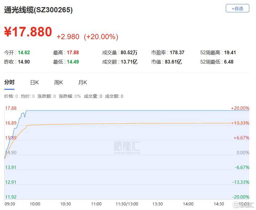 通光线缆:今日20%涨停(ting),偏(pian)离值20.00%,换手率17.23%,成交额13.71亿。龙虎榜数(shu)据显示,机构净买入8135.94万元。