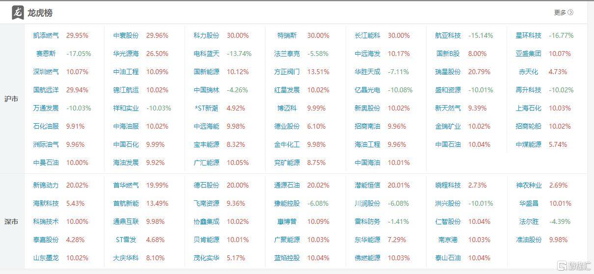 中曼石油:今日涨6.96%,偏(pian)离值25.67%,换手率25.67%,成交额53.77亿。龙虎榜数(shu)据显示,沪股通专用席位(wei)净买入1105.50万元,机构净卖(mai)出8.05亿元。