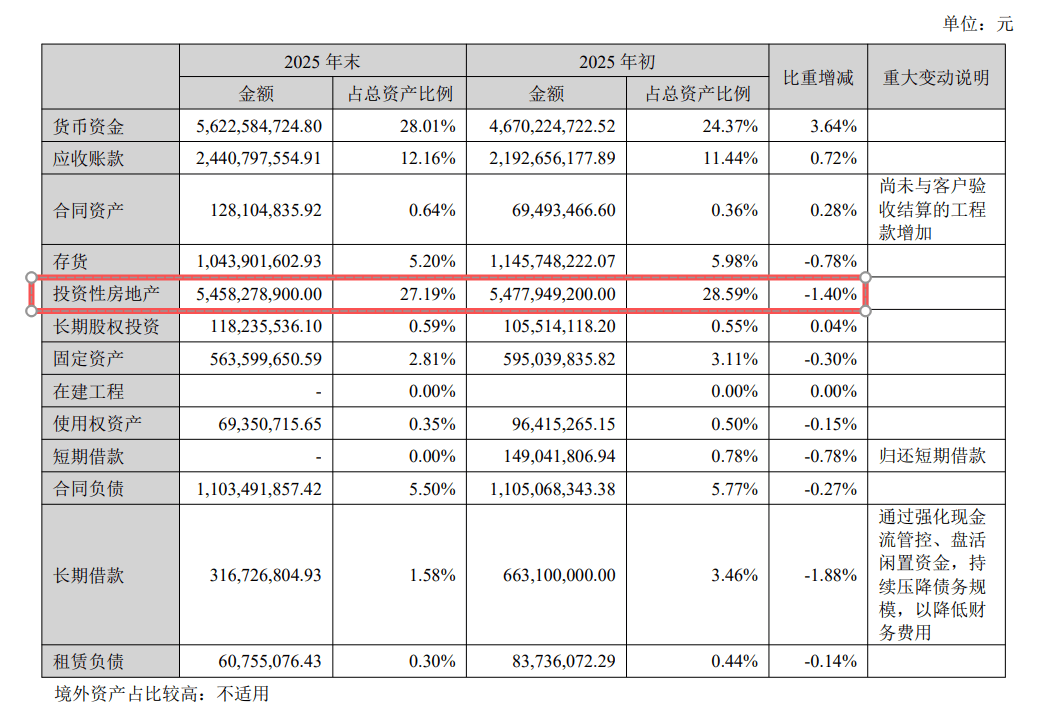 不过,年报亦揭(jie)示了潜在(zai)风险。截至2025年末,公司仍持有账面价值54.58亿元的投(tou)资性房(fang)地(di)产,占(zhan)总资产27.19%,在(zai)房(fang)地(di)产市场深度调整(zheng)期,后续处置仍面临不确定性。