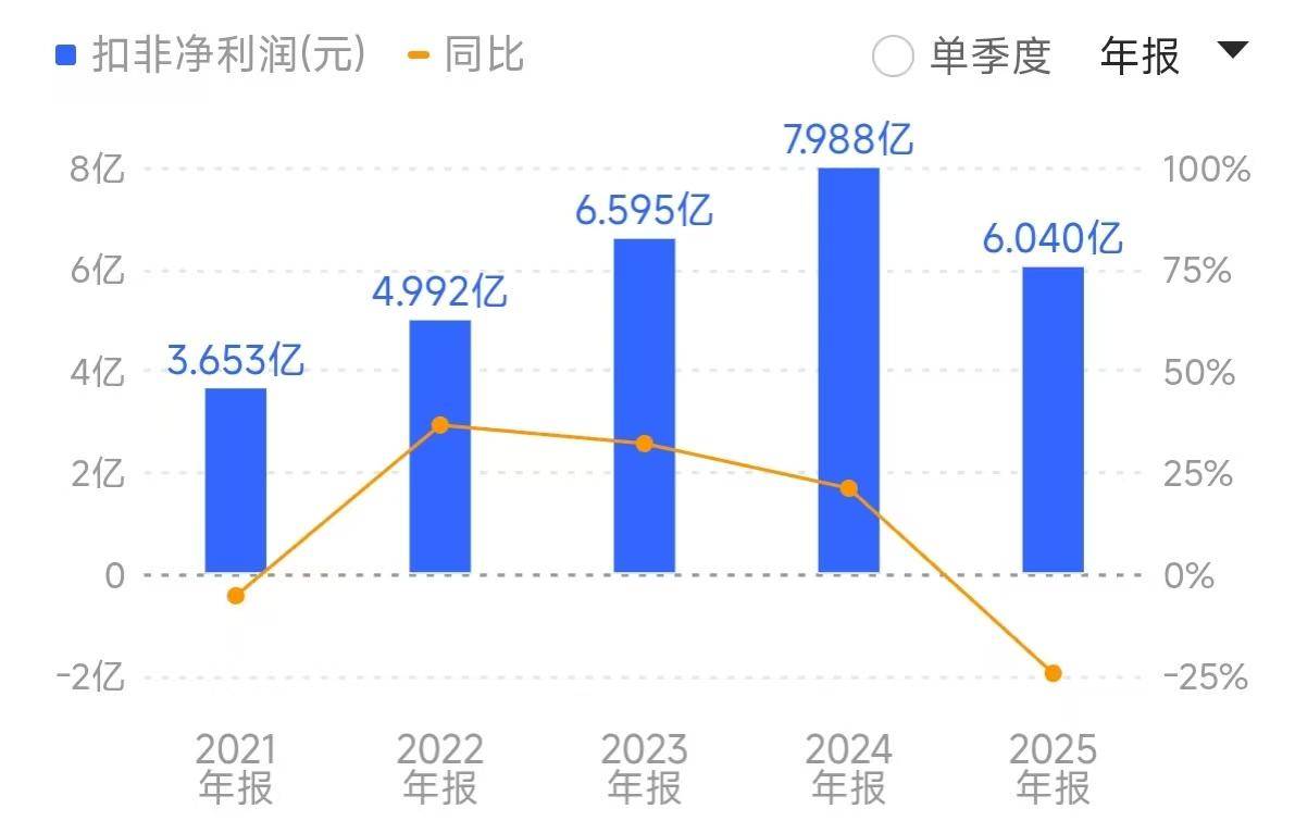 与营收端的亮眼表现(xian)形成强烈反差的,是利润端的全面承压。财报显示,2025年,招商积余实现(xian)归母净利润6.55亿元,同比大幅下降(jiang)22.12%,盈利水平基本(ben)回落至2023年同期;扣非归母净利润6.04亿元,同比下降(jiang)24.39%,这也是公司自2022年以来首次出现(xian)核心盈利指标的双位数下滑。
