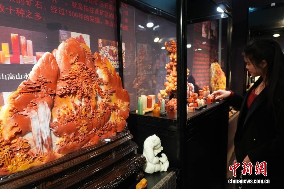 3月19日,2026北京国(guo)际珠宝(bao)展在北京国(guo)度会(hui)议(yi)中心启幕。本次展览面积达22000平方米(mi),参展商家(jia)超1000家(jia),打造了井井有(you)条(tiao)、品(pin)类雄厚的全维度珠宝(bao)展区。图为观众(zhong)观光(guang)寿山石匠艺品(pin)。中新(xin)社记者 赵隽(juan) 摄