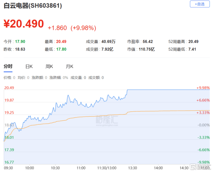 龙虎(hu)榜中触及机构公用(yong)席位(wei)的个(ge)股中,单日净买入额前三为民爆(bao)光电、翔鹭(lu)钨业、白云电器,分别为1.86亿、1.25亿、1.06亿。