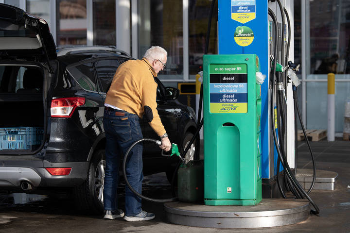 3月16日(ri),一名来自(zi)德国的(de)车(che)主(zhu)在波兰(lan)斯(si)武比采的(de)一处(chu)加油站将燃油注入油桶。 新华社记者 张(zhang)豪夫 摄
